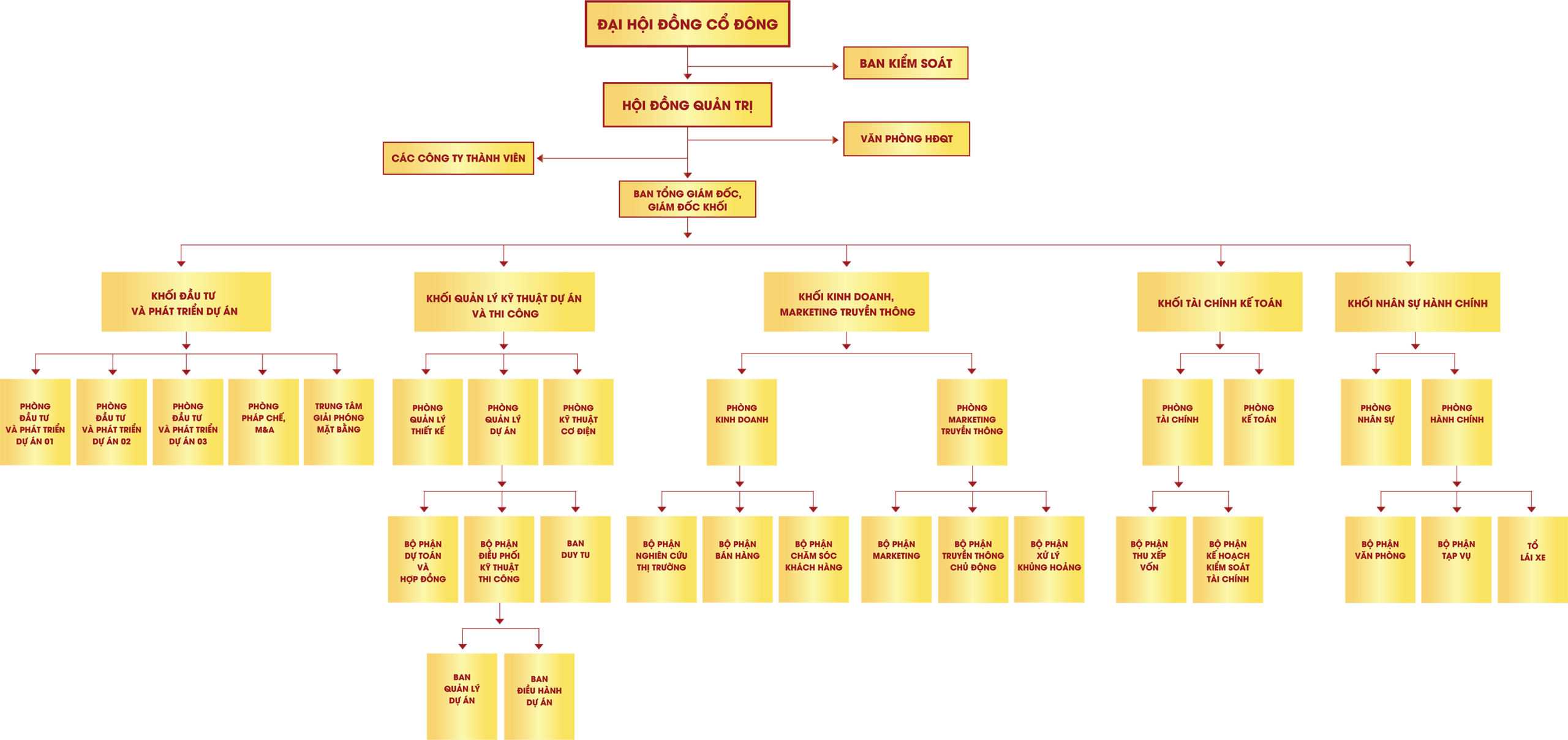 Mỗi thành viên phụ trách các mảng chủ chốt từ đầu tư, kinh doanh, phát triển dự án đến tài chính, truyền thông và nhân sự. Sự phối hợp chặt chẽ, tầm nhìn chiến lược cùng tinh thần trách nhiệm là nền tảng để Tập đoàn không ngừng đổi mới, nâng cao hiệu quả và kiến tạo giá trị bền vững cho khách hàng, đối tác và cộng đồng.