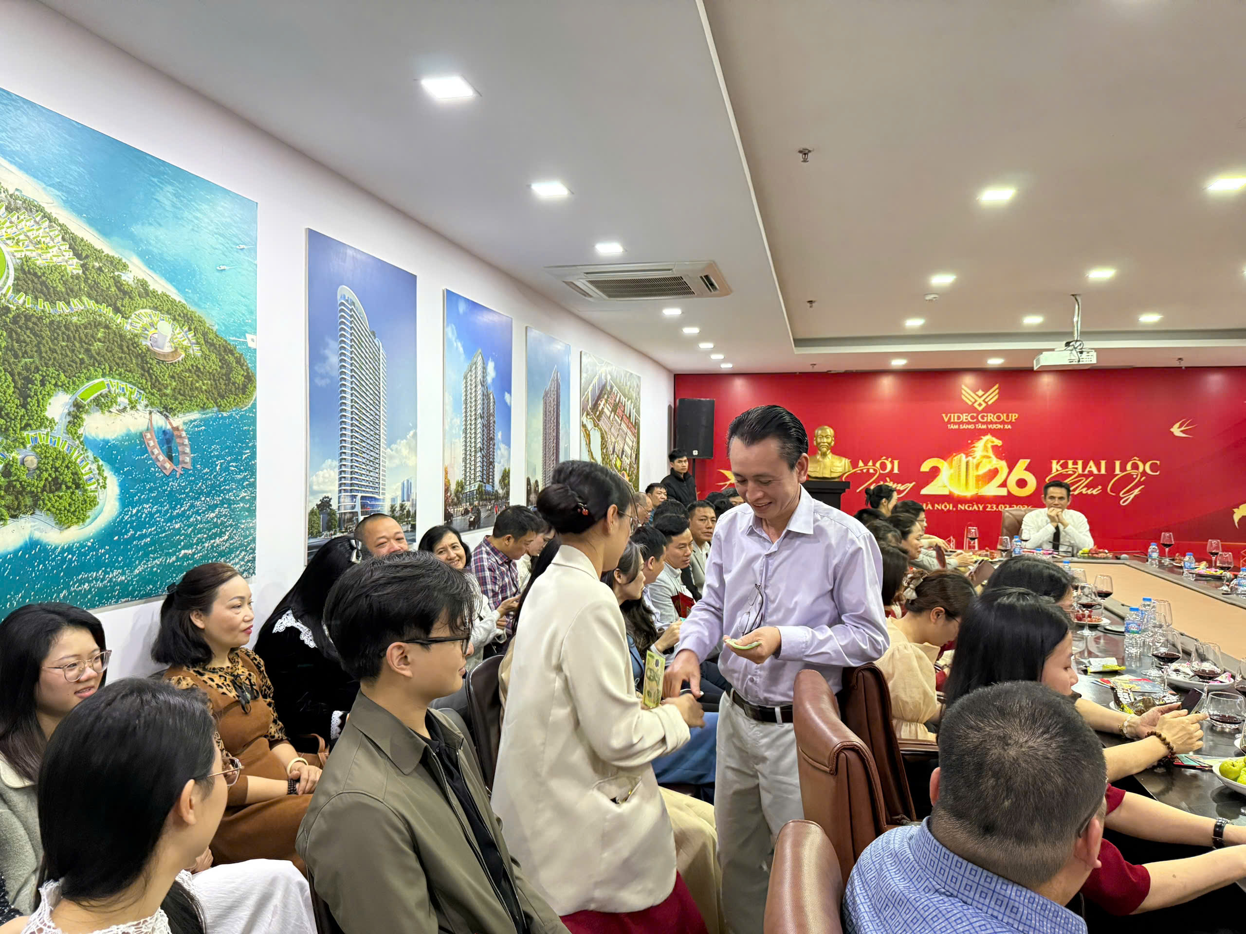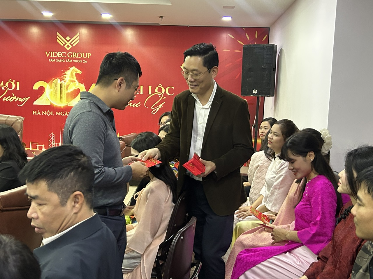 (Ban lãnh đạo Tập đoàn Videc trao lì xì cho CBNV tại Buổi khai xuân)
