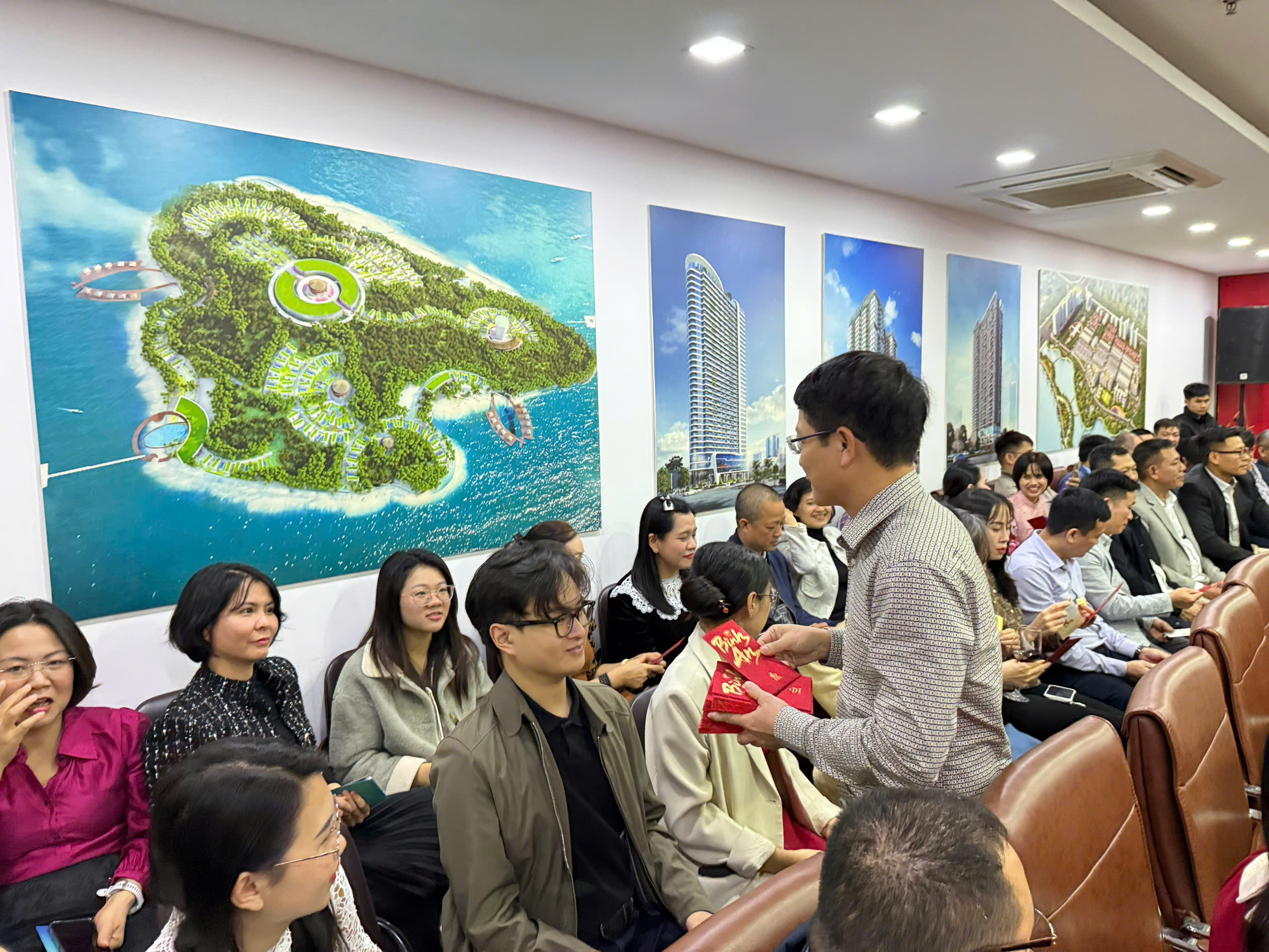 Khép lại phần chia sẻ, Chủ tịch đã trực tiếp trao lì xì đầu xuân tới CBNV, gửi gắm niềm tin và động lực cho một năm mới tăng tốc và khởi sắc.