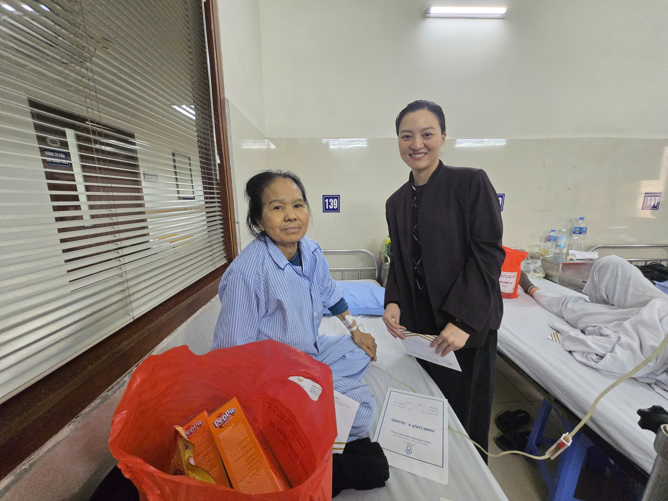 Phó Chủ tịch HĐQT VIDEC Group – Nguyễn Thị Lộc Phú trao tặng bệnh nhân tại Viện Huyết học – Truyền máu Trung ương