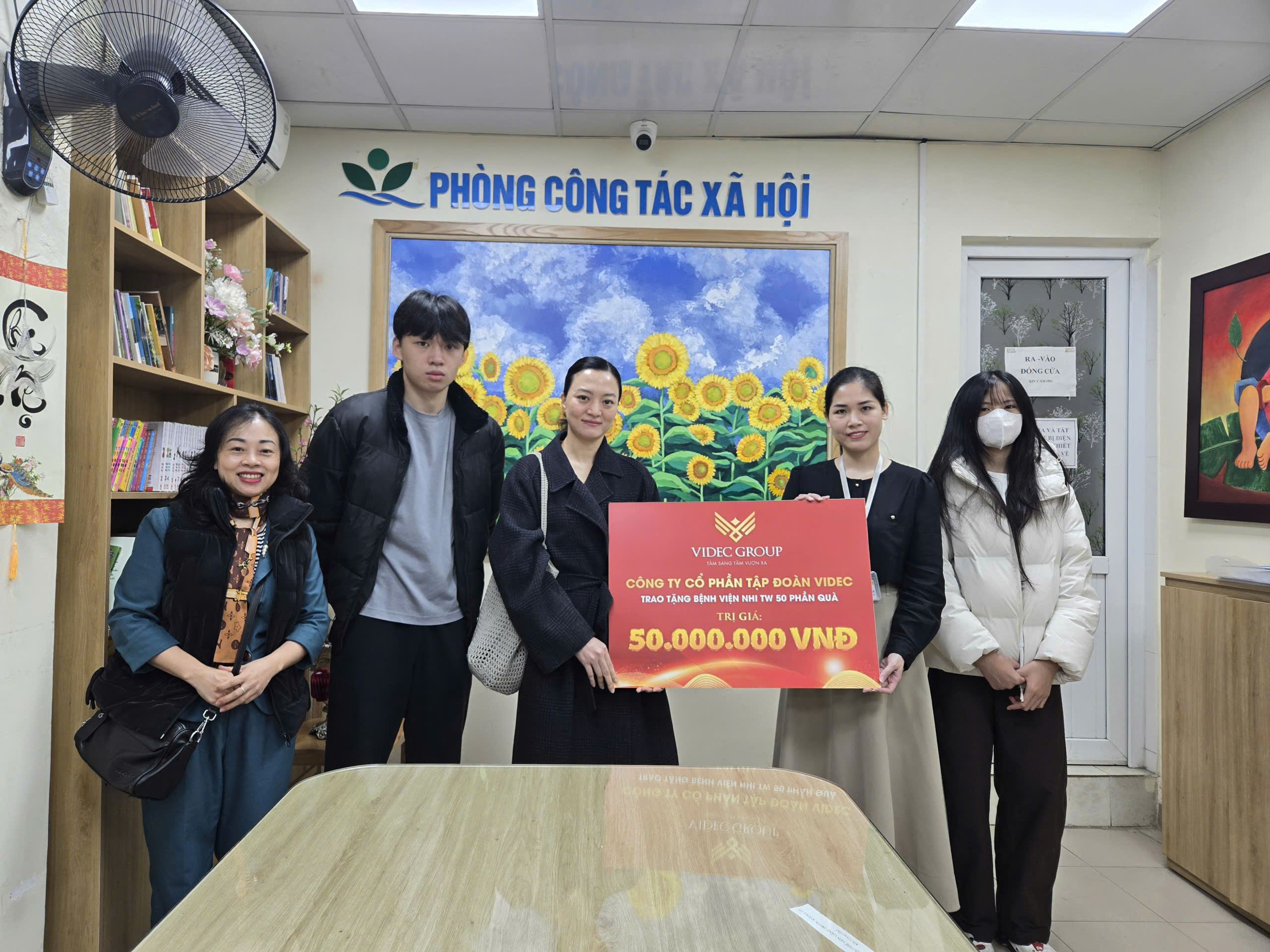 (Đại diện Tập đoàn VIDEC trao quà cho đại diện khoa Nhi – Bệnh viện Nhi TW sáng ngày 11.2.2026)