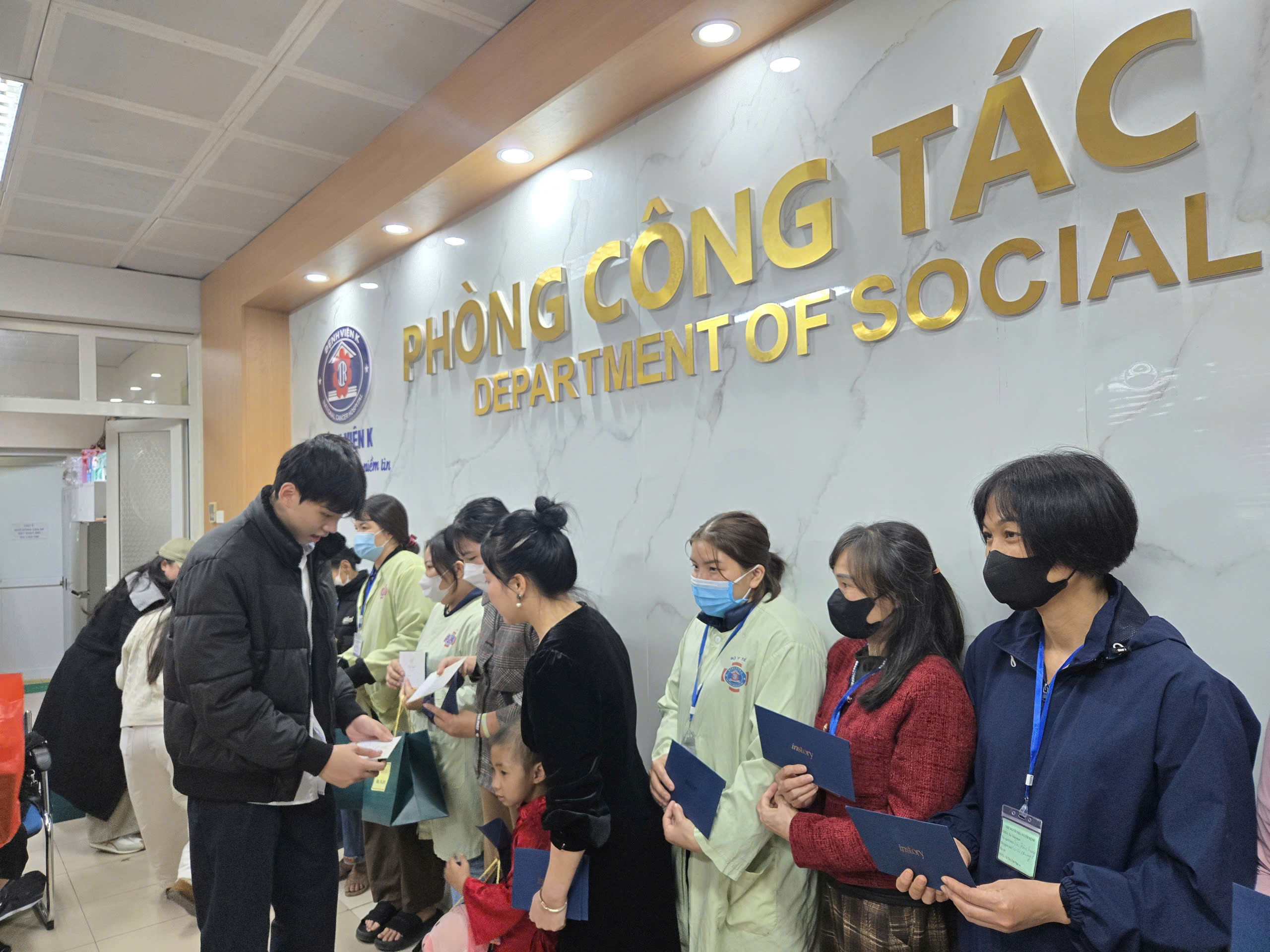 Trong buổi sáng, đoàn công tác đã trao 50 suất quà, mỗi suất trị giá 1.000.000 đồng, tới 50 bệnh nhi có hoàn cảnh khó khăn đang điều trị dài ngày tại bệnh viện Nhi TW.